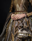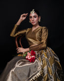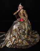 3 PIECE PATCHWORK TISSUE LEHENGA- Bronze