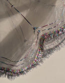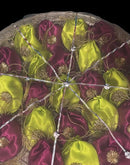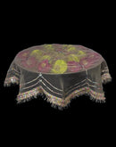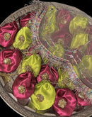 Round Thaal cover made in Organza fabric embellished with Multi colored Gota and laces.