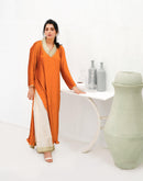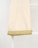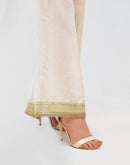 Raw silk Boot cut Pants with lace embellished Leg opening.