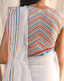 Chandni - A lightweight organza saree with an accent blouse embroidered all over with Multicolor Gota dhanak.