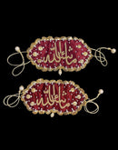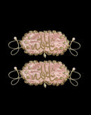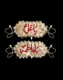 Handmade Gota Imam Zamin detailed intricately with kora, Gota phool and pearls on Silk Base. A pair Size: 3 x 6 inches Closure: String Tie Product color may slightly vary due to photographic...