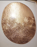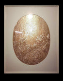 A glass framed handcrafted tapestry embroidered using antique rose gold gota ribbon.
