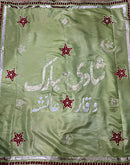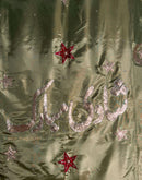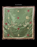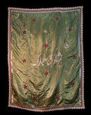 Hand-embroidered backdrop made in silk with various embroidery techniques, bordered with gota and laces.