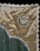 Hand-embroidered backdrop made in silk with various embroidery techniques, bordered with gota and laces.