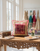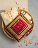 Personalized organza Bari bag with hand embroidery on front and back, featuring couple’s names and wedding date.