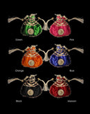 Handmade Nikkah Bidh pouches made in Silk fabric embellished with Gota Champa, Flower and Ghungroo Tassel String.